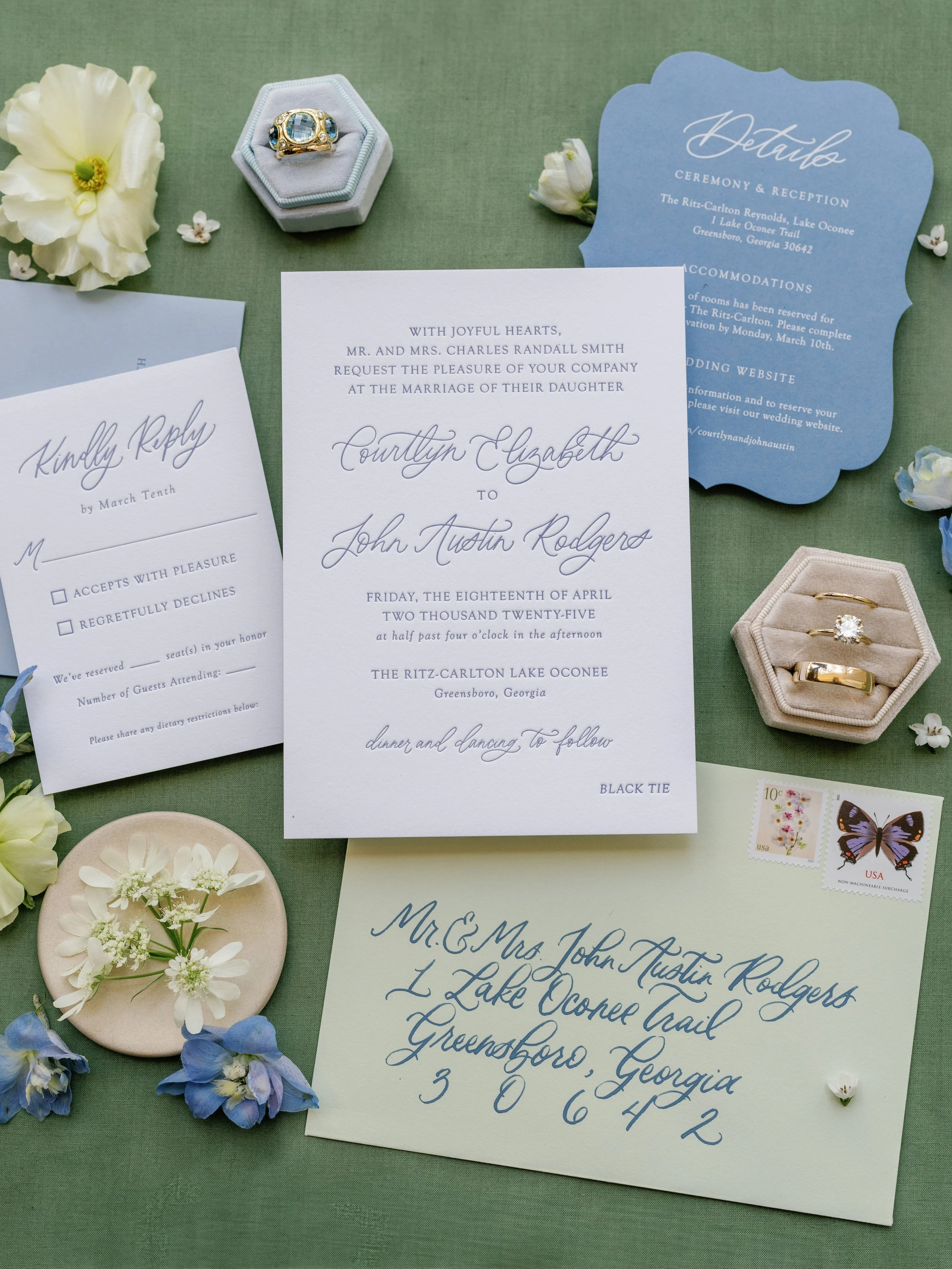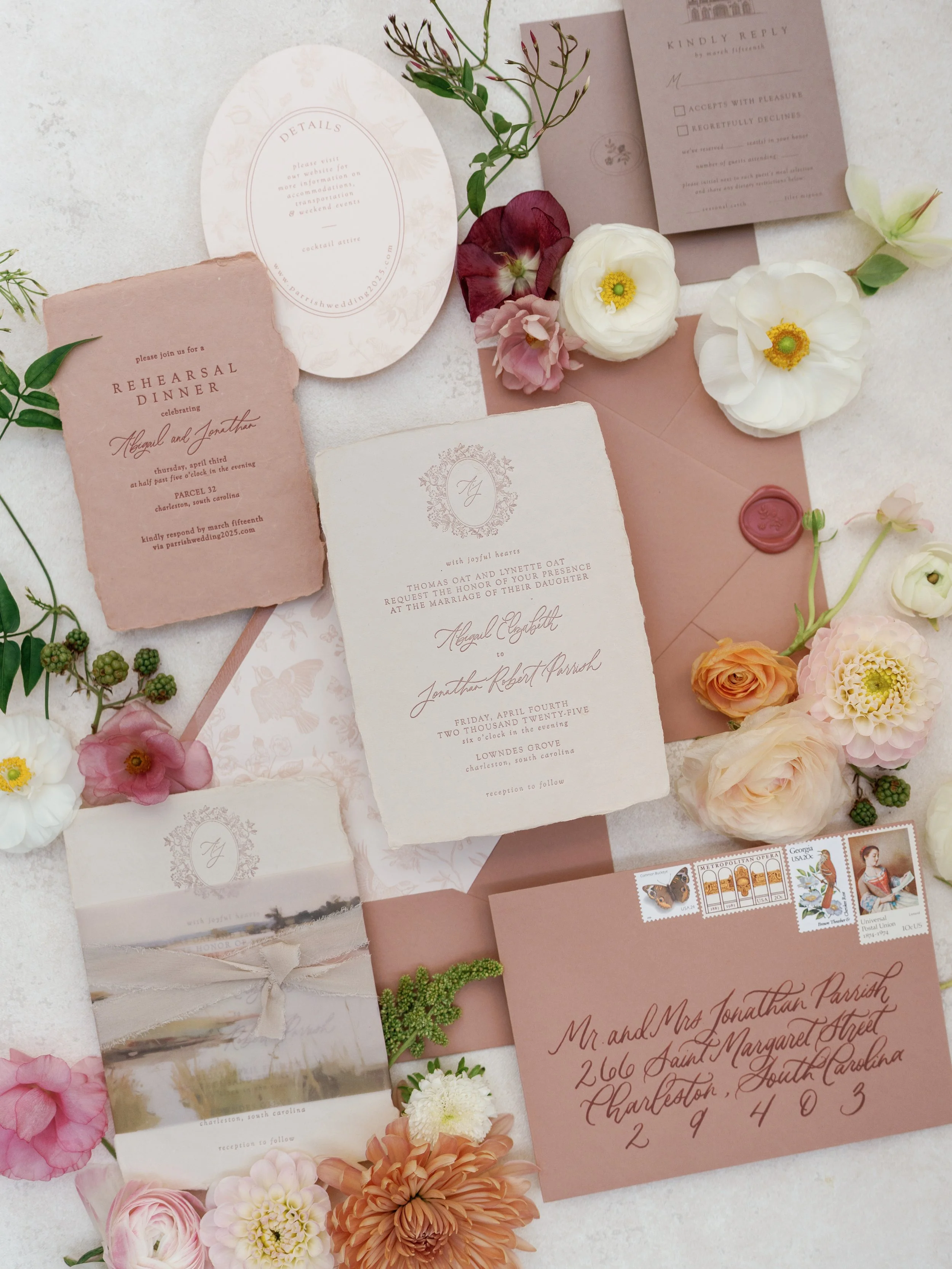 A curated collection of semi-custom wedding invitations and save the dates. Six designs with endless options for personalization - including wording, ink and envelope colors, embellishments & more.